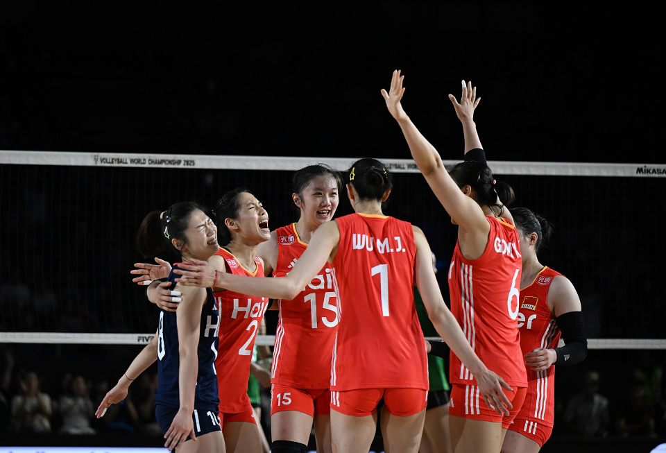 8月23日,中国队球员庆祝胜利。新华社记者 侯昭康 摄