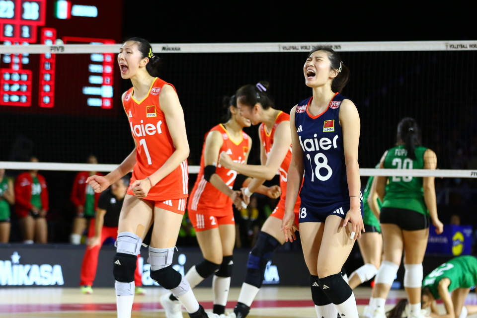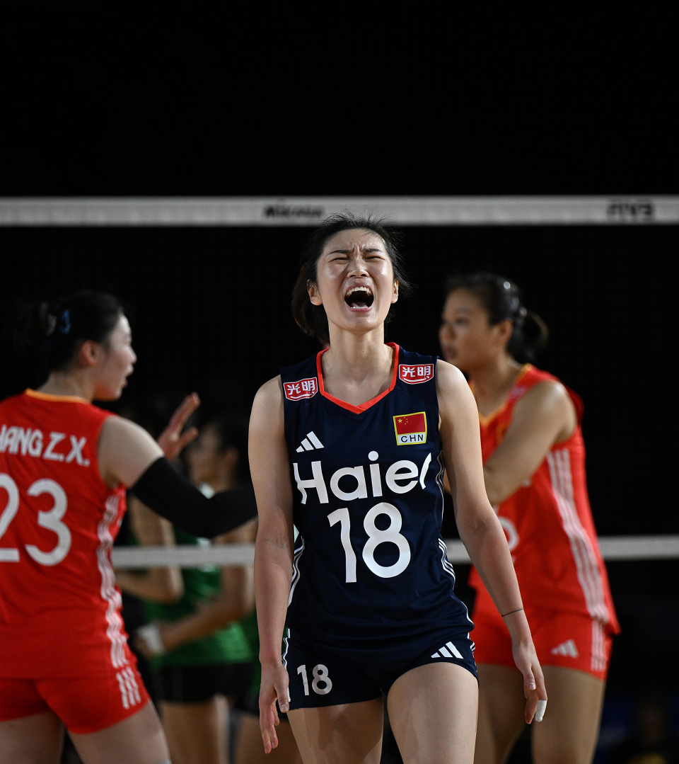 8月23日,中国队球员在比赛中庆祝得分。新华社记者 孙玮彤 摄