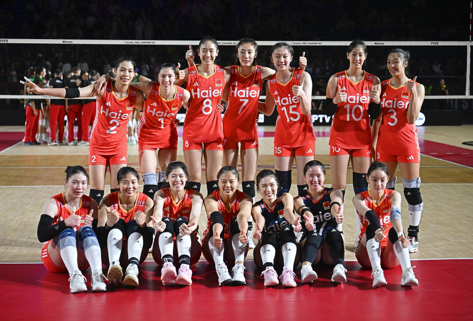 8月23日,中国队球员在赛后合影。新华社记者 侯昭康 摄